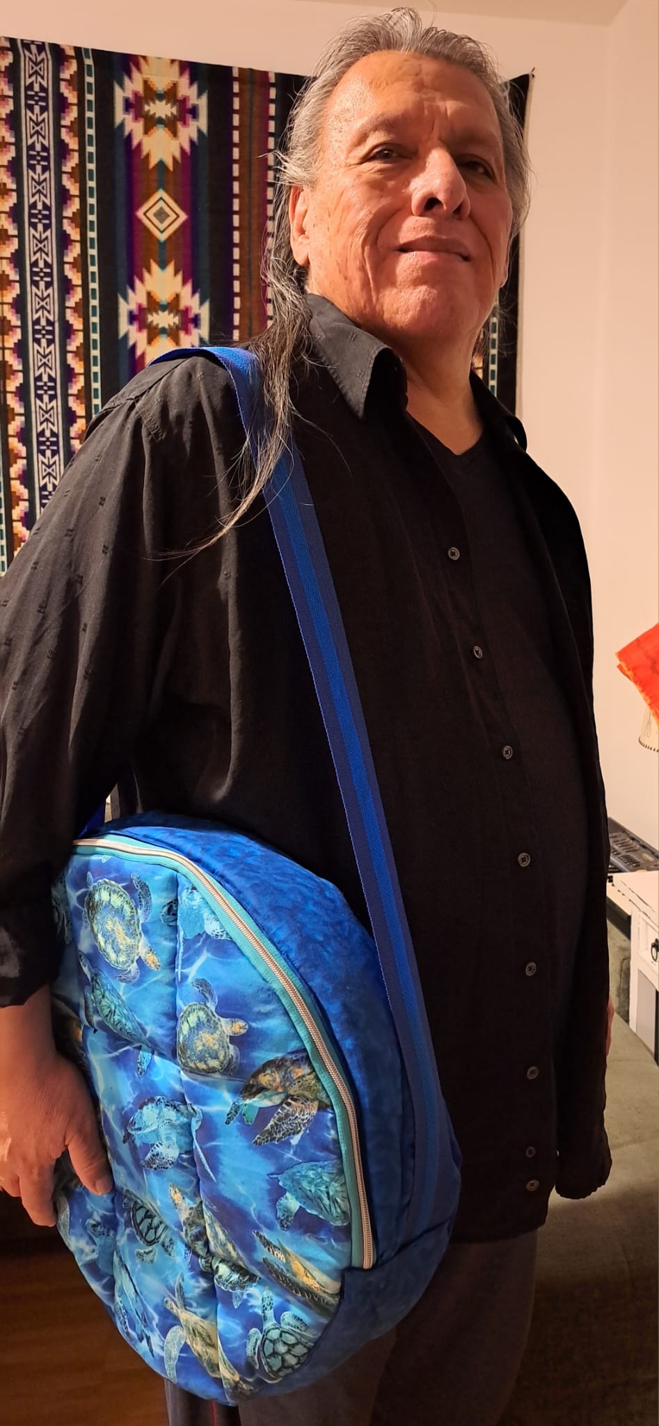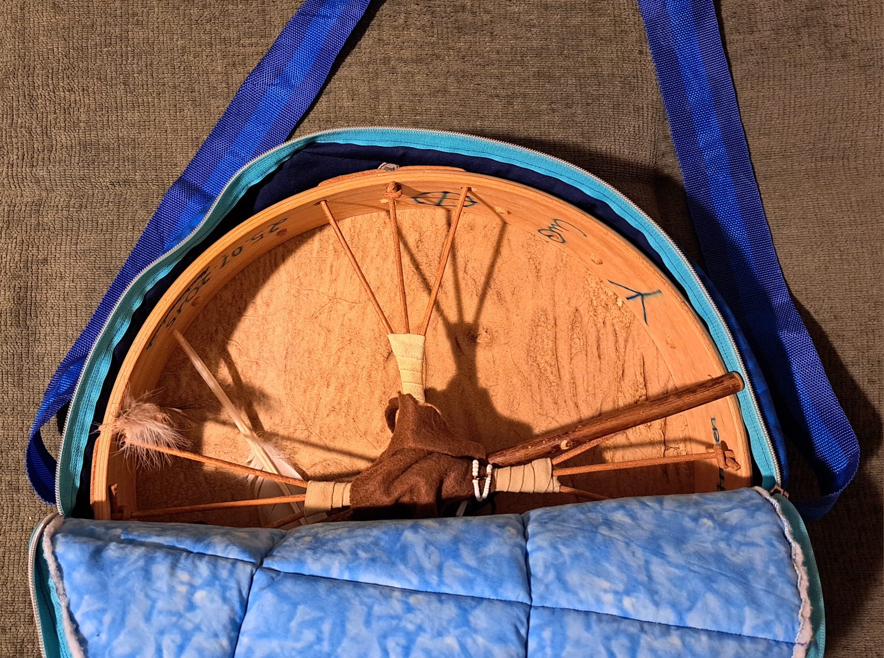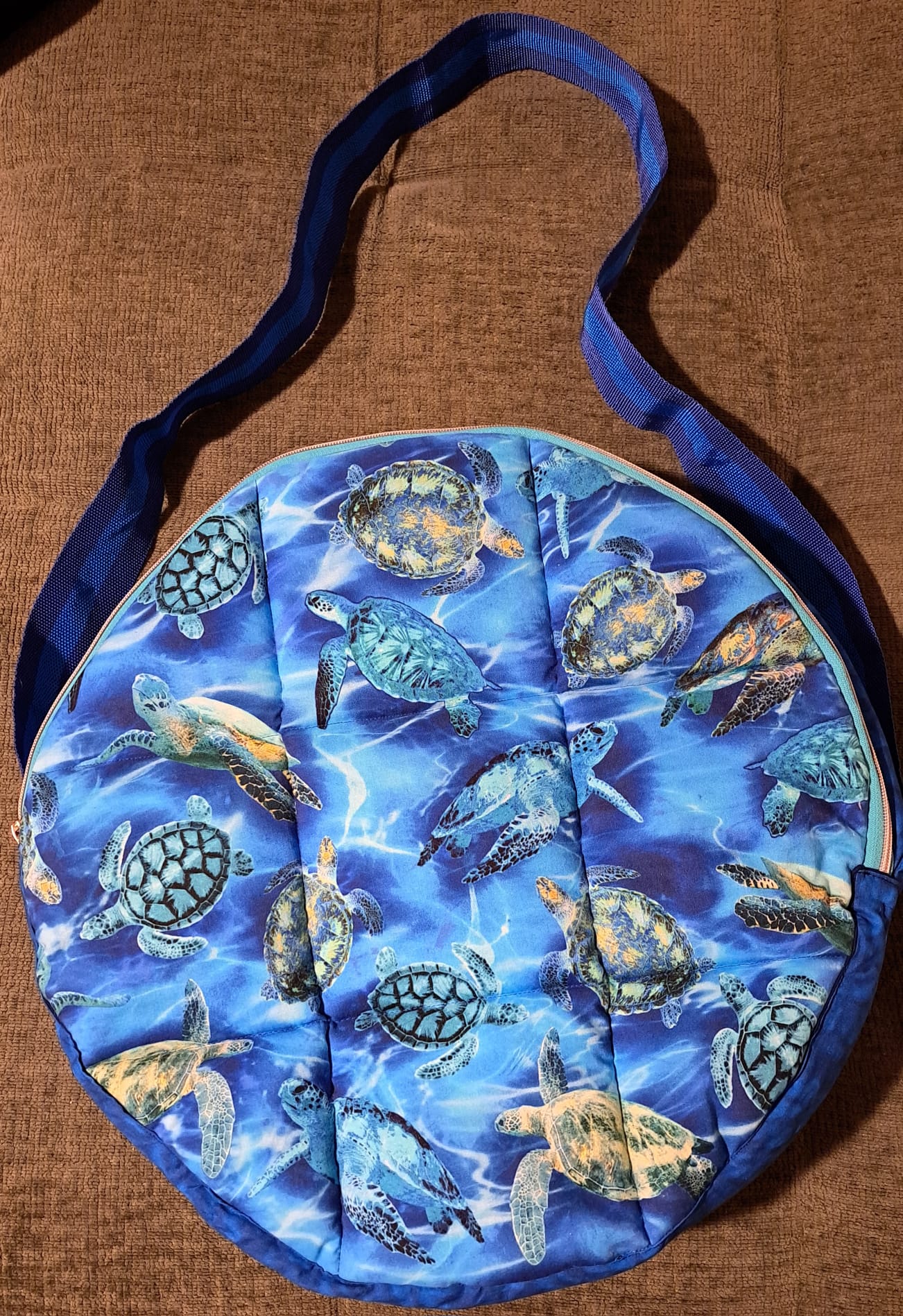 Drum Case: "Keya (turtle) in the water"ONE-OF-A-KIND!Hand Made Material: cotton Maintenance: wash by hand Dimensions: 40 cm Interior diameter Price: 69 Euros + Shipping Cost Buyers unconditionally accept the exclusion of any warranty. It is also excluded the possibility to return or replace the item. NO REFUNDS!